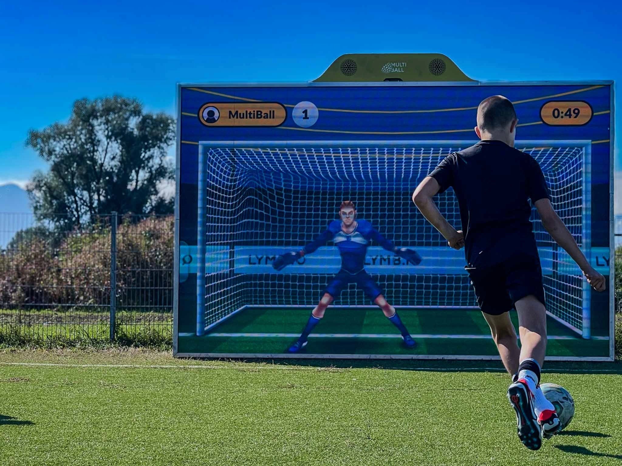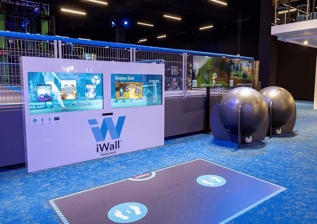 A large sensor wall creating a self-operating attraction where participants use hands, feet, and body movements to play soccer-themed games and reaction challenges. Turn it on at event start and it runs continuously without staff – automatically cycling games, tracking scores, and entertaining crowds. Cloud-based software delivers automatic updates throughout the tournament and captures usage analytics.